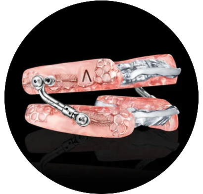 Respire Pink features an ergonomic design with telescopic hardware that’s fully personalized, making it ideal for individuals who experience teeth grinding. It works by allowing lateral and vertical movement, opening up the airway for improved airflow while holding the jaw in a position that prevents it from falling back and collapsing the airway.