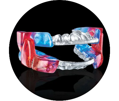 Respire Blue+ is a custom, personalized mouthpiece featuring a dual-block design and interlocking wings. It works by keeping the airway open in any sleep position and allows for a wide range of mouth movement. Naturally fall into a pleasant night’s sleep and wake up feeling refreshed!